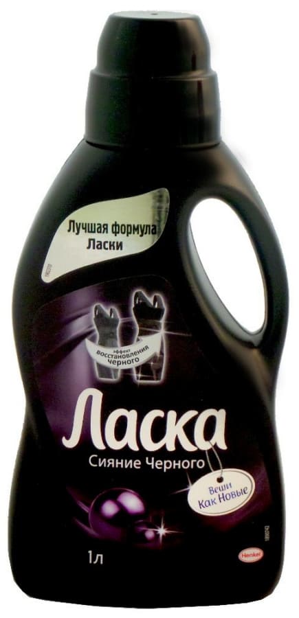 Ласка Сияние черного с Эффектом восстановления черного - это жидкое средство для стирки черной и темной одежды, которое ухаживает за тканями и разглаживает шероховатые волокна ткани стирка за цвет.