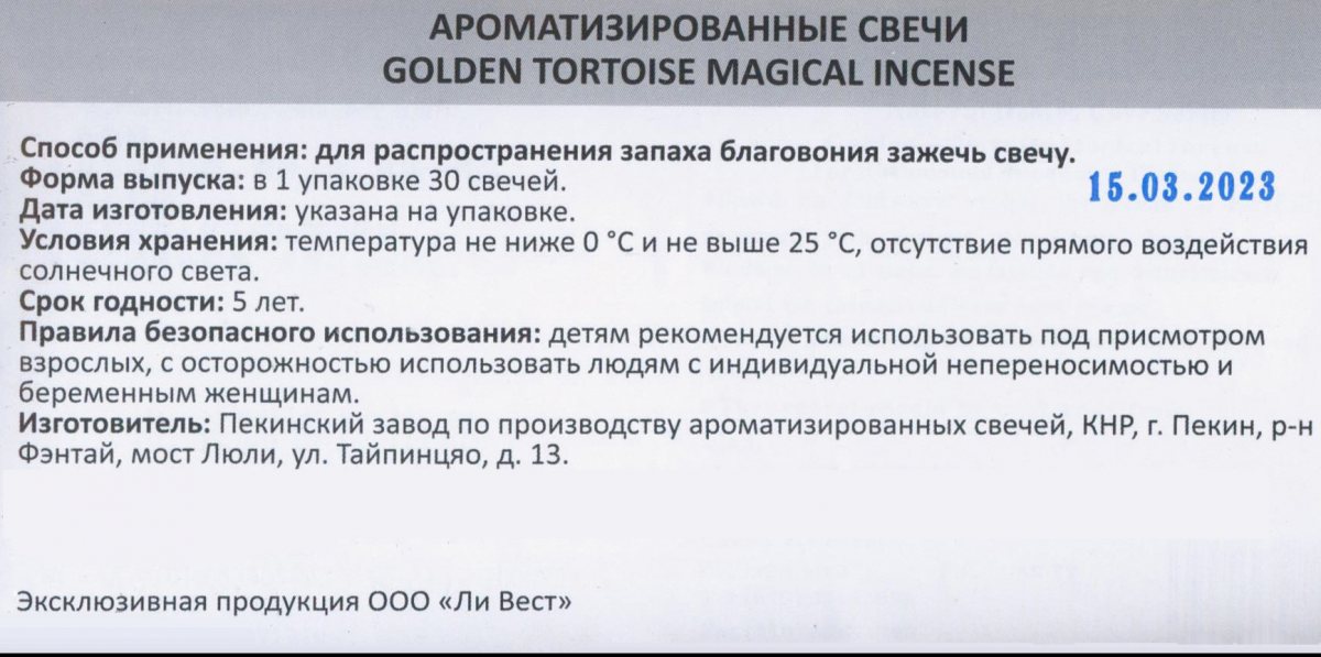 Условия хранения свечей: в прохладном и сухом месте, в закрытой упаковке.