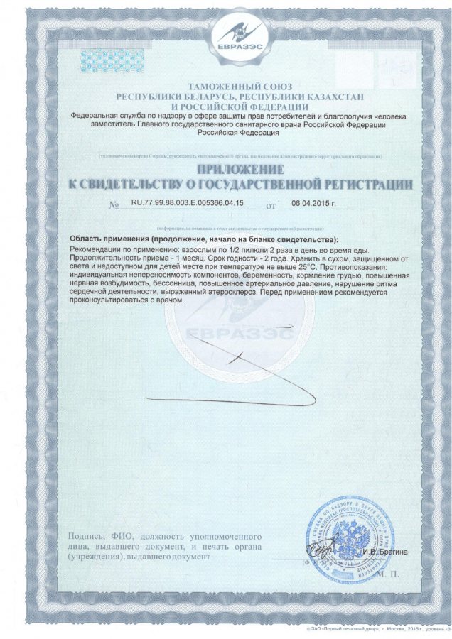 Противопоказания: Индивидуальная непереносимость компонентов, беременность, кормление грудью, повышенная нервная возбудимость, бессонница, повышенное артериальное давление, нарушение ритма сердечной деятельности, выраженный атеросклероз.