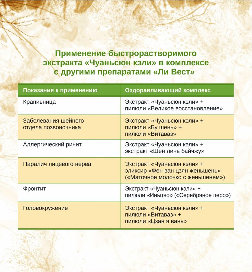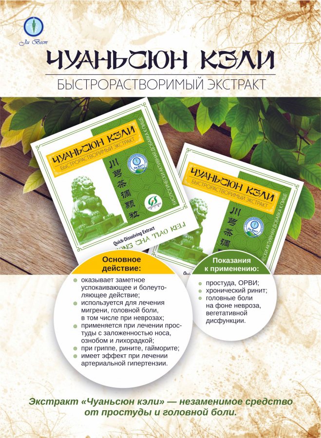Экстракт «Чуаньсюн кэли» оказывает быстрое болеутоляющее и успокаивающее действие.