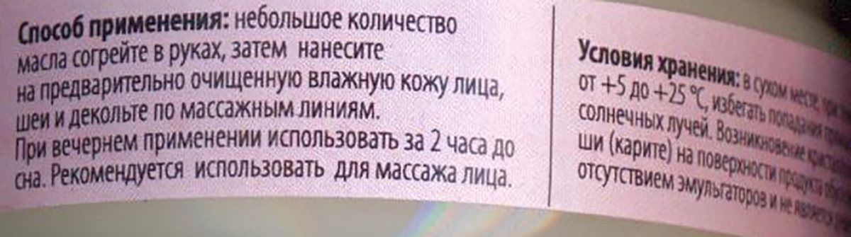 Способ применения: масло наносится на чистую кожу лица. Необходимое количество масла согреть в руках и нанести по массажным линиям на лицо и область декольте.