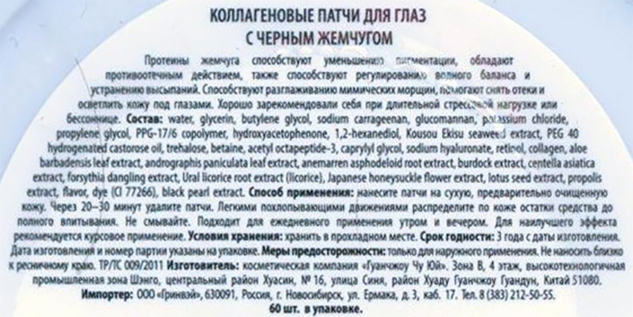 Способ применения: наклейте патчи на сухую, предварительно очищенную кожу нижнего века, оставляя от нижних ресниц расстояние около 2 мм. Через 20–30 минут удалите патчи. Легкими похлопывающими движениями распределите по коже остатки средства до полного впитывания. Не смывайте.