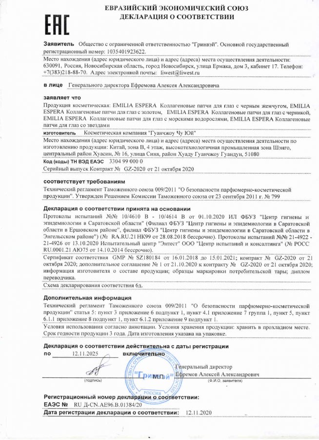 Изготовитель: косметическая компания «Гуанчжоу Чу Юй», зона В, 4 этаж, высокотехнологичная промышленная зона Шэнго, центральный район Хуасин, № 16, улица Синя, район Хуаду Гуанчжоу Гуандун, Китай.