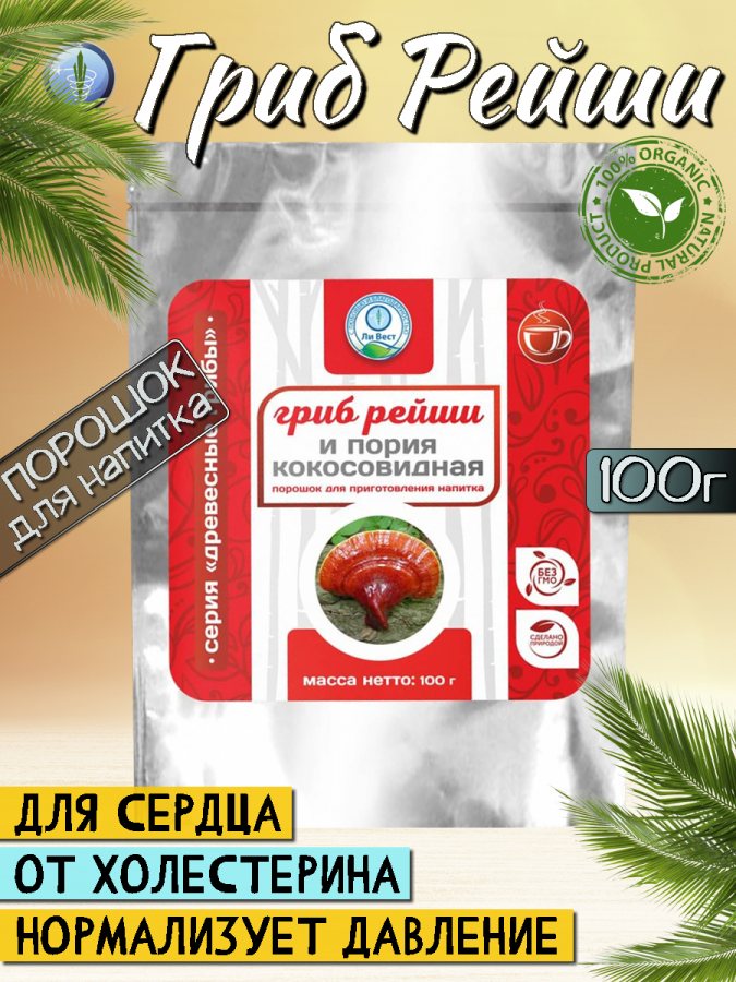 Ли Вест Гриб Рейши с порией кокосовидной для сердца, от холестерина в крови, нормализует давление