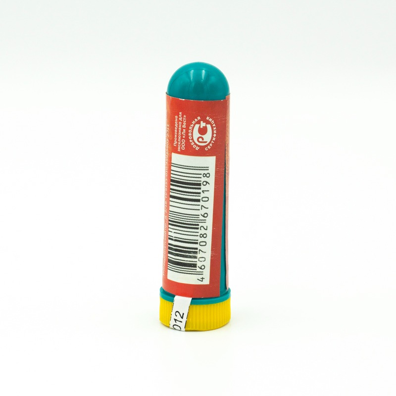 Способ применения: отвинтите защитный колпачок, закруглённый конец мини-ингалятора частично ведите в ноздрю и, зажав другую ноздрю, произведите 5 - 10 глубоких вдохов, выдыхая через рот. Повторите с другой ноздрёй.