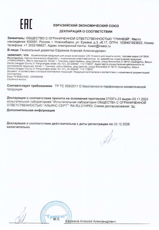 Ли Вест LW Skin защитное масло для волос, LW-14