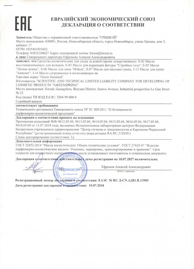 Состав: масло жожоба — 70%, чайное дерево — 6 %, гирчовник влагалищный — 6 %, кардамон — 5%, экстракт ревеня — 1%, цитрусовые — 4%, экстракт магнолии — 1%, шалфей многокорневищный — 7%.