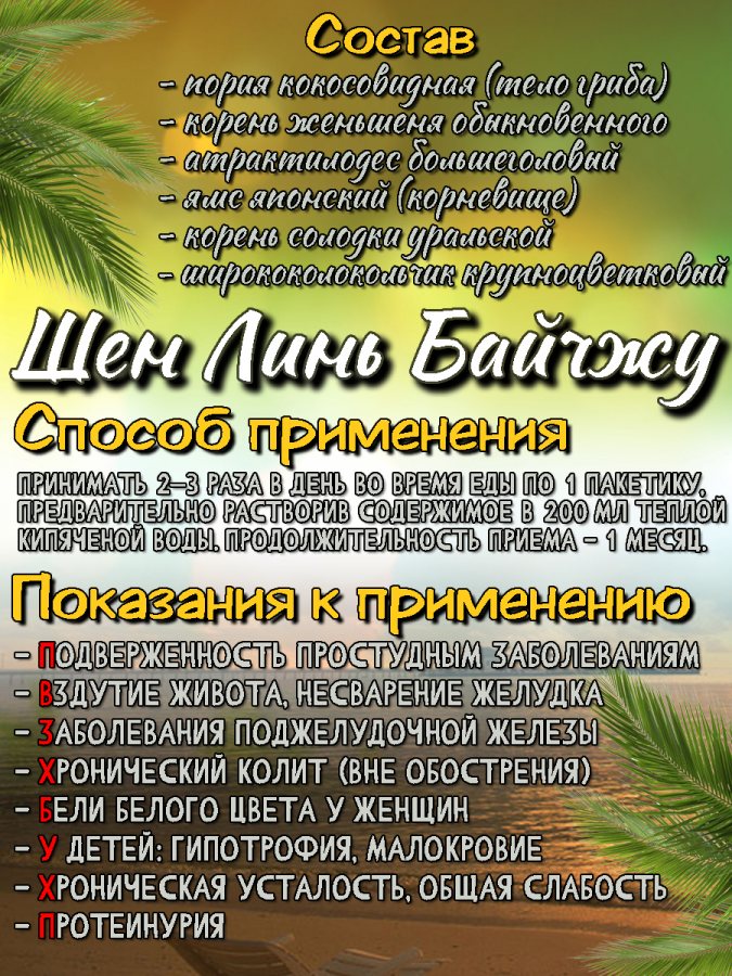 Состав экстракта «Шен линь байчжу»