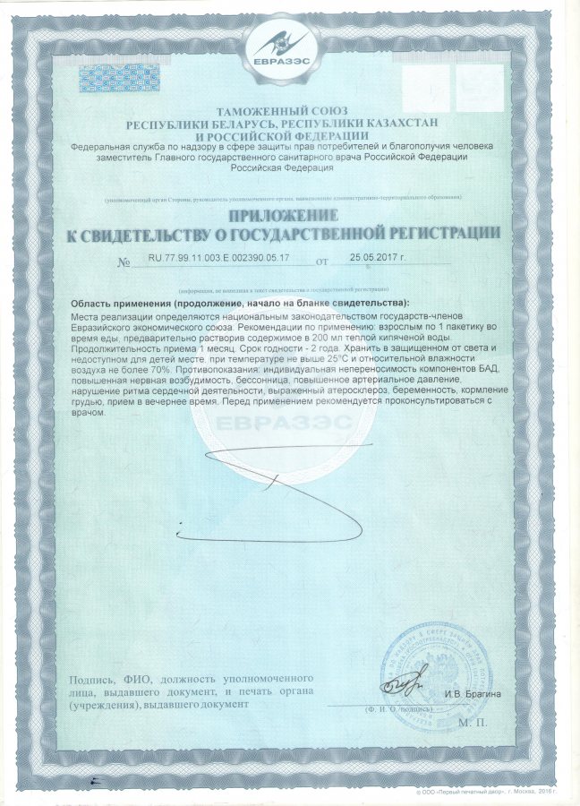 Применение: принимать 2–3 раза в день. Во время еды, взрослым по 1 пакетику, предварительно растворив содержимое в 200 мл теплой кипяченой воды. Продолжительность приема 1 месяц.