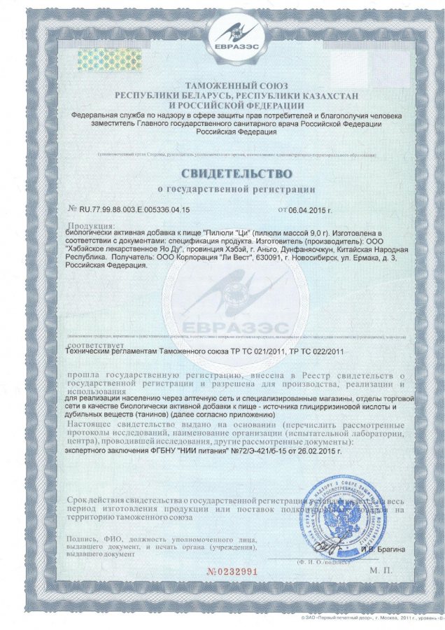 Производитель: Хэбэйское лекарственное ООО «Яо Ду», г. Аньго, Дунфаняочжун, КНР.