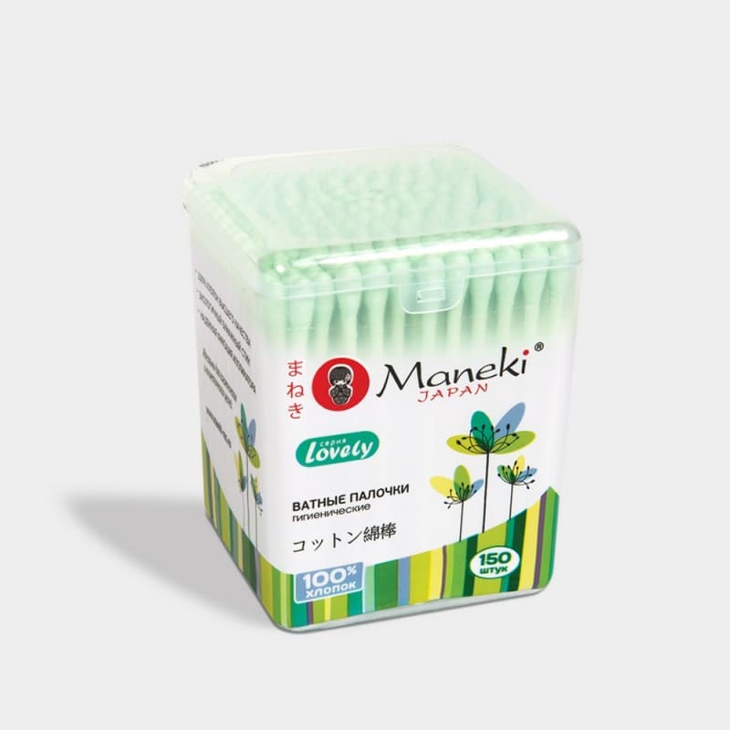 Maneki Lovely ватные палочки гигиенические зеленые 150шт в пластиковой коробке