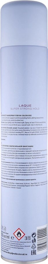 Лак для волос Professionnelle Laque от Schwarzkopf Professional предназначен для невидимой фиксации волос, хорошо укрепляет их структуру, надежно защищает поврежденные и ослабленные волосы от неблагоприятных факторов.